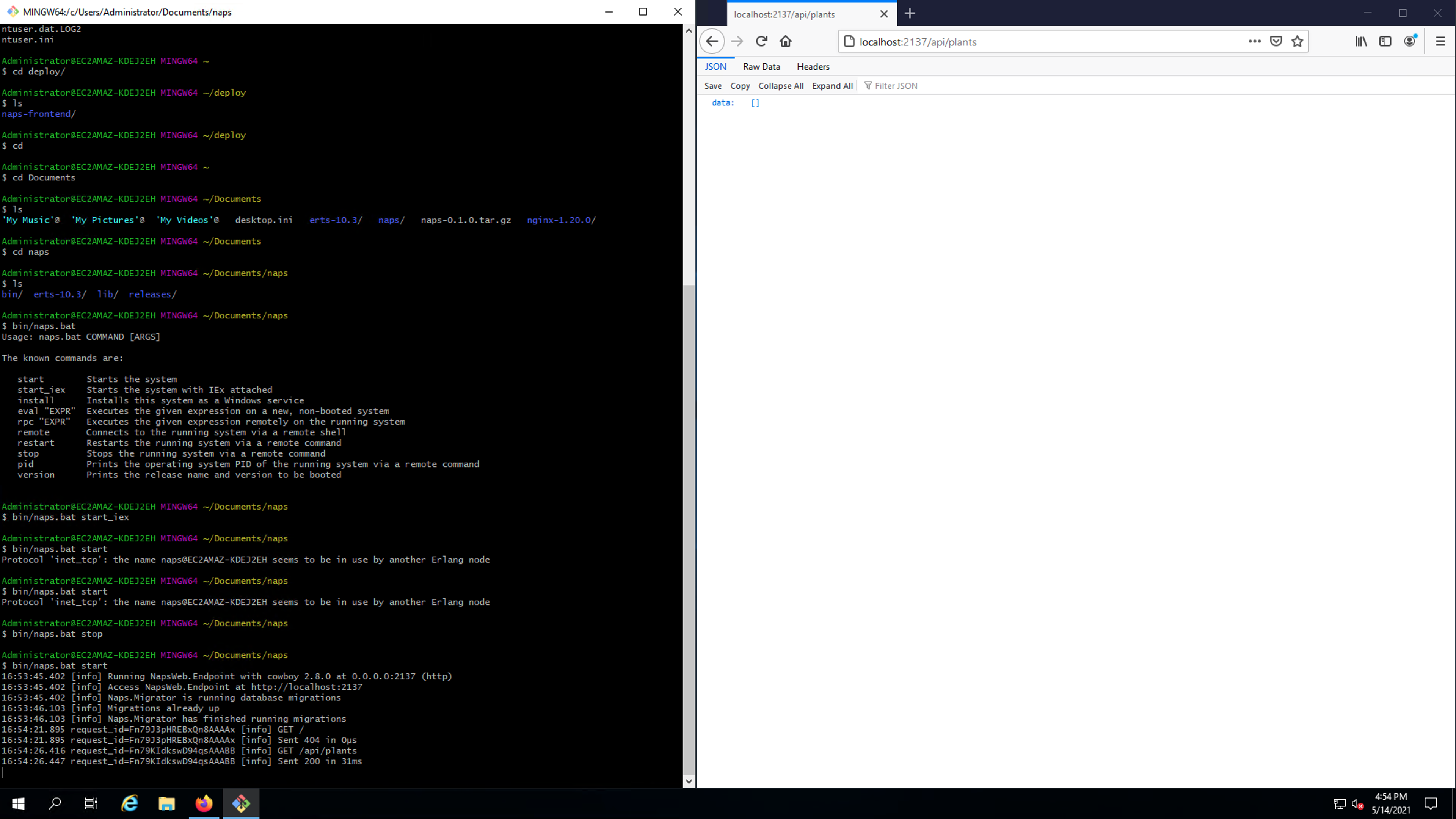 Due to the fact that Windows Server does not come with an SSH server by default, all interactions with the server had to be done through an RDP connection. This is more than enough to install Erlang and PostgreSQL, which are available as redistributable installers. However, the Elixir installer for Windows requires an internet connection, which was why I decided to compile my releases on a different machine, and deploy them on one with no Elixir installed.