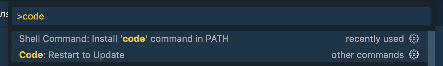 這種情況下,請先使用 Finder 或 Spotlight 開啟 VS Code,然後按 Cmd-Shift-P,並輸入 code。